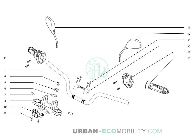 13 : 35150-QSM-A50 - Ensemble poignée et commande à droite